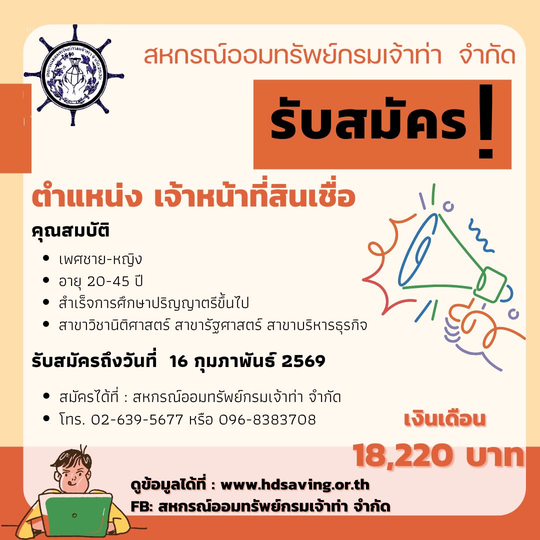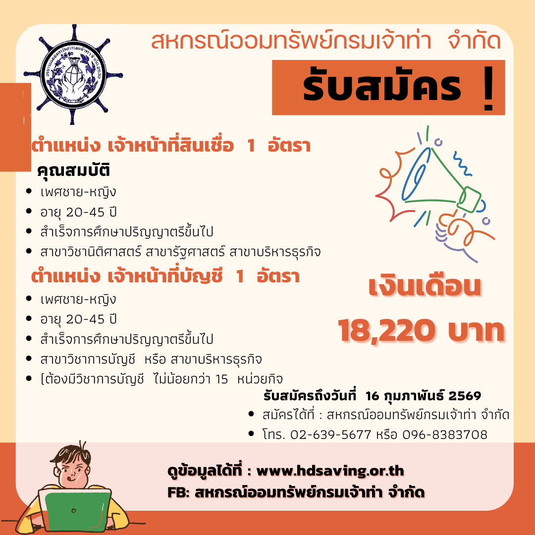 - ประกาศที่ 2/2569 เรื่อง รับสมัครบุคคลเพื่อสอบคัดเลือกเป็นเจ้าหน้าที่สหกรณ์